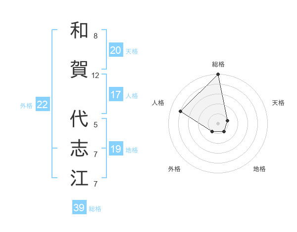 和賀 代志江さんを姓名の画数から五運を鑑定