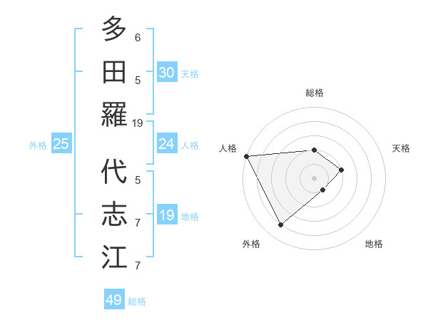 多田羅 代志江さんの外格は25画の4点