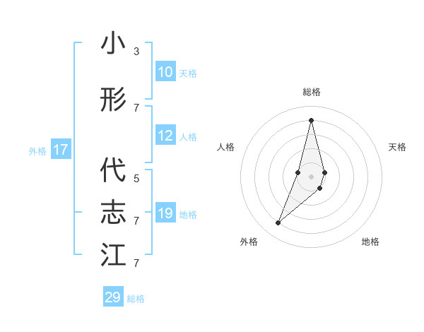 小形 代志江さんの総格は29画の4点