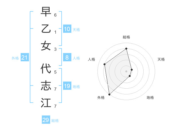 早乙女 代志江さんの総格は29画の4点