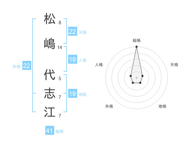 松嶋 代志江さんを姓名の画数から五運を鑑定