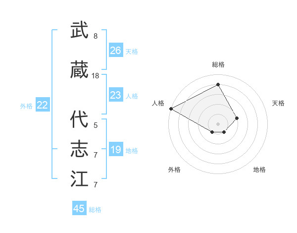 武蔵 代志江さんを姓名の画数から五運を鑑定