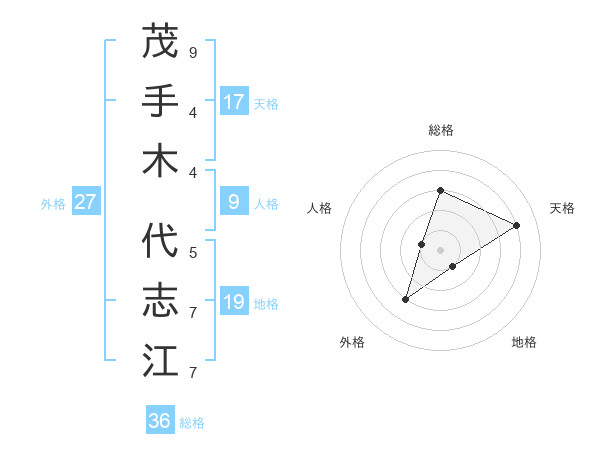 茂手木 代志江さんを姓名の画数から五運を鑑定