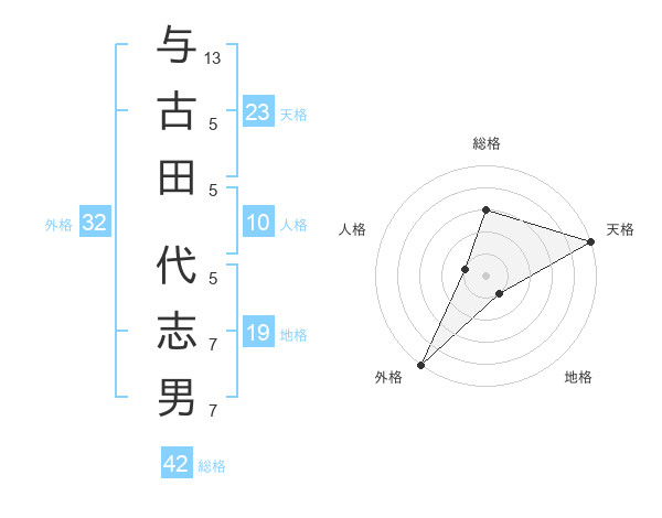 与古田 代志男さんを姓名の画数から五運を鑑定