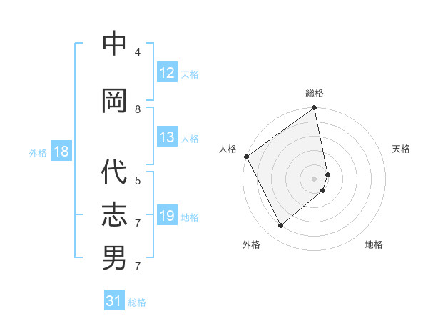 中岡 代志男さんを姓名の画数から五運を鑑定