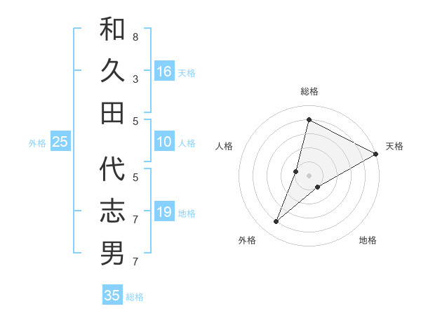 和久田 代志男さんを姓名の画数から五運を鑑定