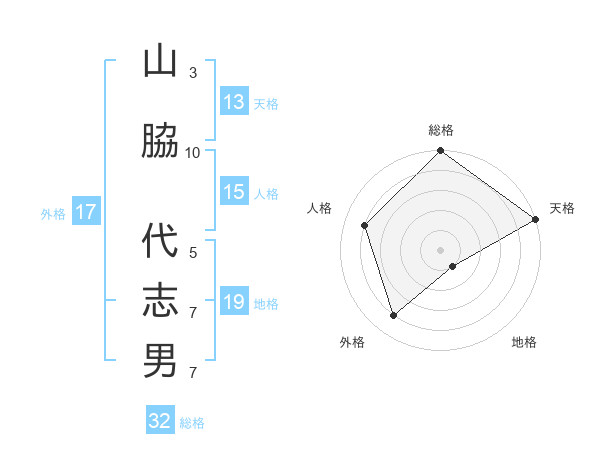山脇 代志男さんの総格は32画の5点!
