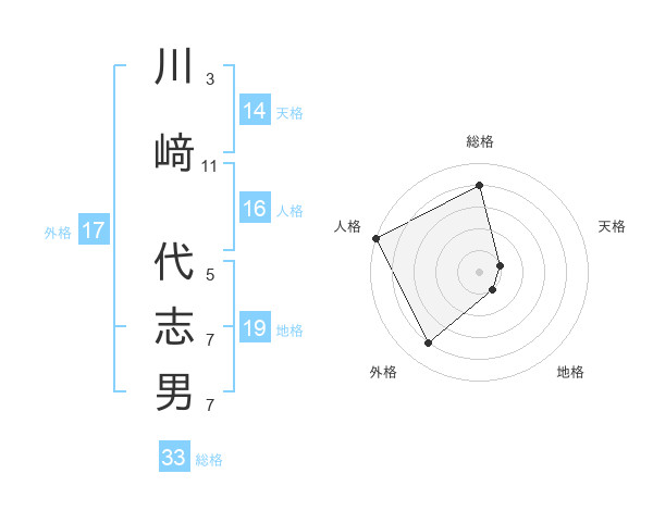 川﨑 代志男さんを姓名の画数から五運を鑑定