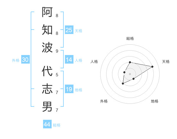 阿知波 代志男さんの総格は44画の2点!