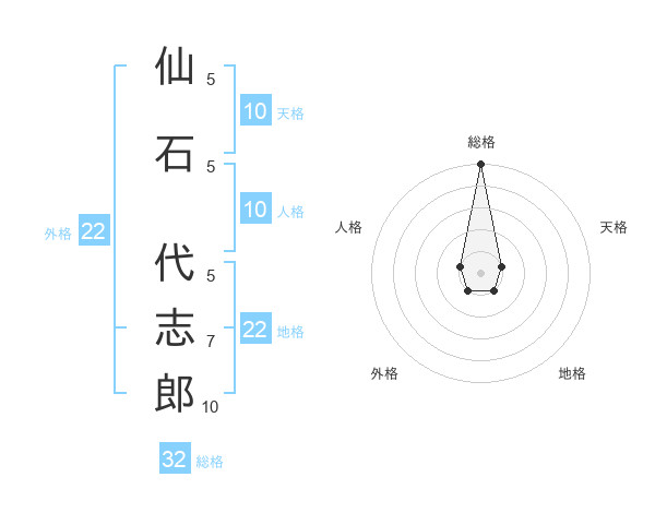 仙石 代志郎さんの総格は32画の5点!