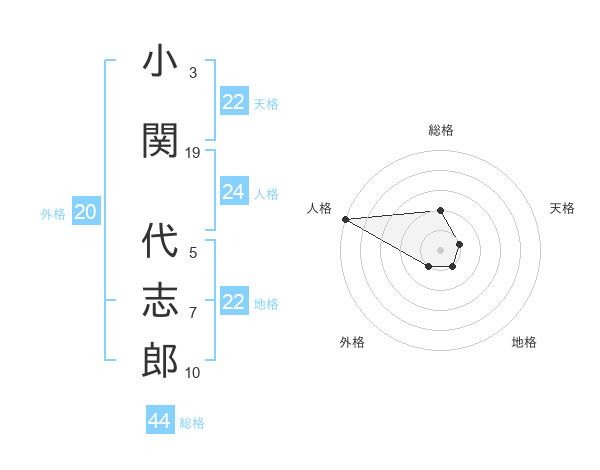 小関 代志郎さんの総格は44画の2点!