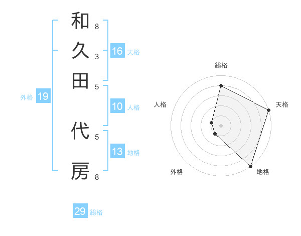 和久田 代房さんの総格は29画の4点!