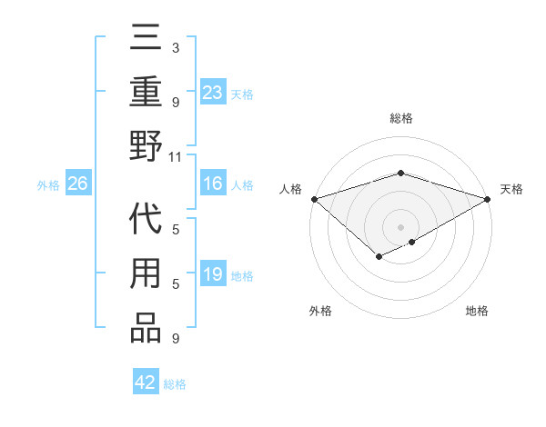 三重野 代用品さんを姓名の画数から五運を鑑定