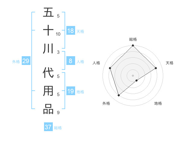 五十川 代用品さんを姓名の画数から五運を鑑定