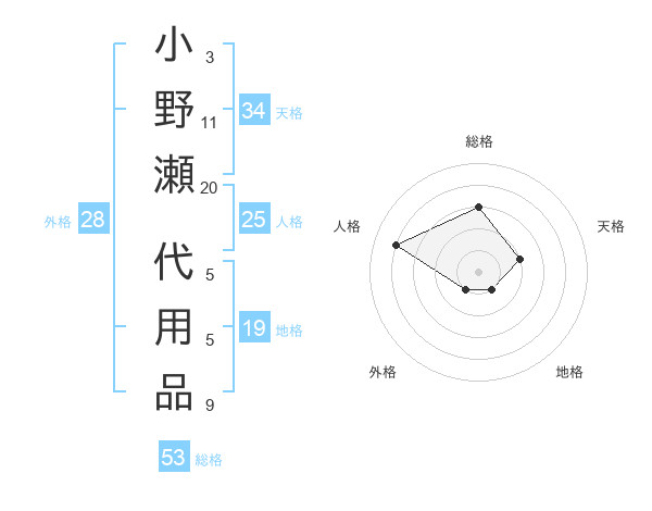 小野瀬 代用品さんを姓名の画数から五運を鑑定