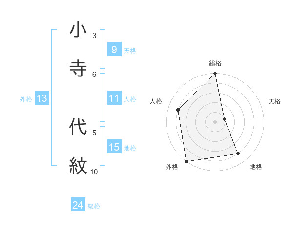 小寺 代紋さんを姓名の画数から五運を鑑定