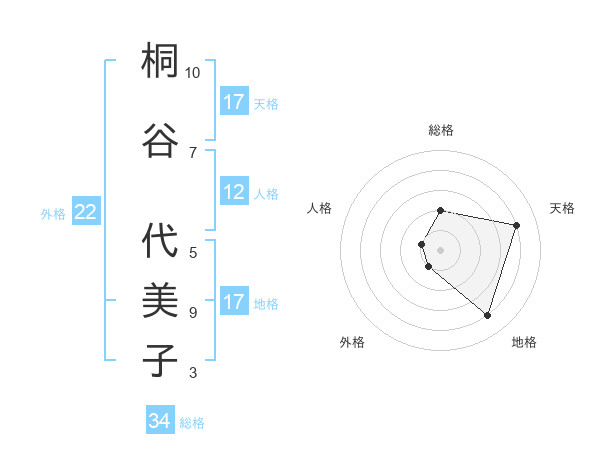 桐谷 代美子さんの天格は17画の4点!