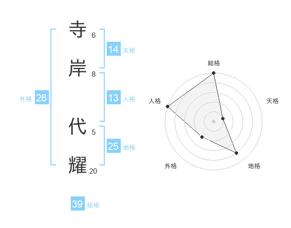 寺岸 代耀さんの天格は14画の1点!