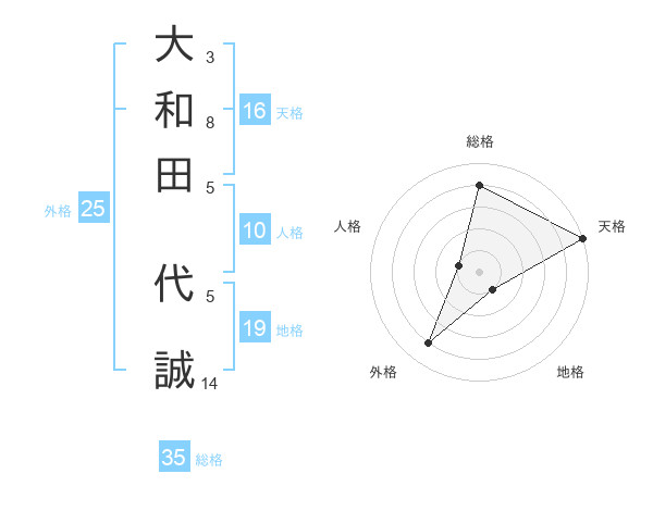 大和田 代誠さんを姓名の画数から五運を鑑定