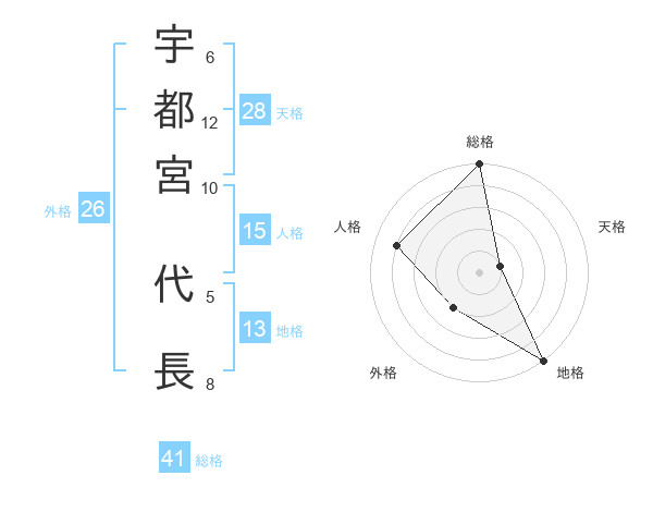 宇都宮 代長さんを姓名の画数から五運を鑑定