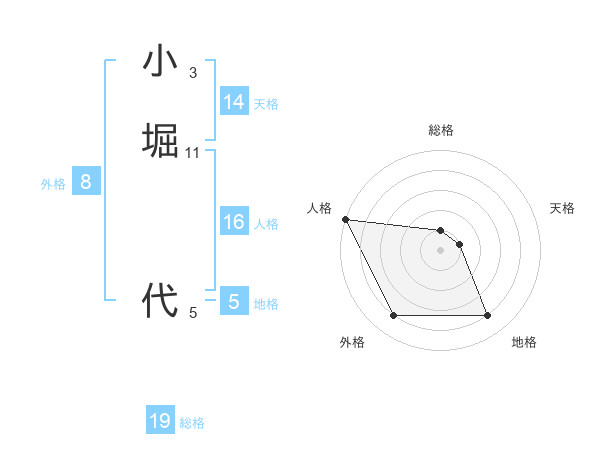 小堀 代さんの天格は14画の1点!