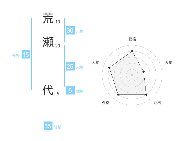 荒瀬 代さんの総格は35画の4点!