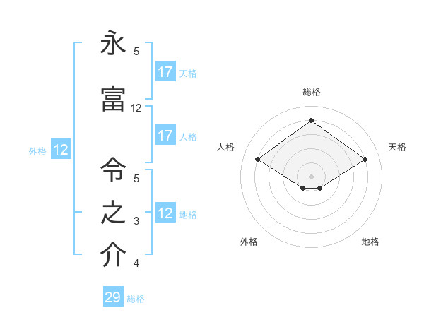 永富 令之介さんの天格は17画の4点!