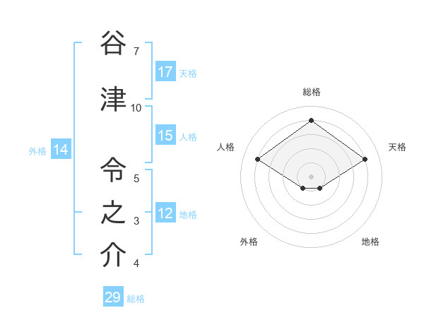 谷津 令之介さんを姓名の画数から五運を鑑定