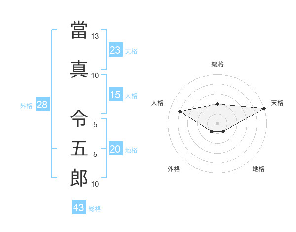 當真 令五郎さんの天格は23画の5点!