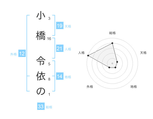 小橋 令依のさんを姓名の画数から五運を鑑定