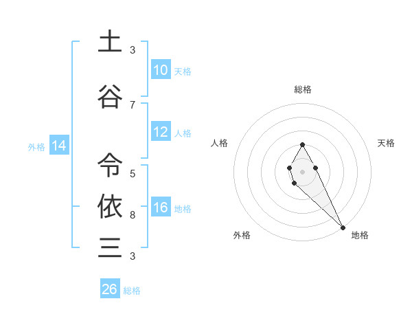 土谷 令依三さんを姓名の画数から五運を鑑定