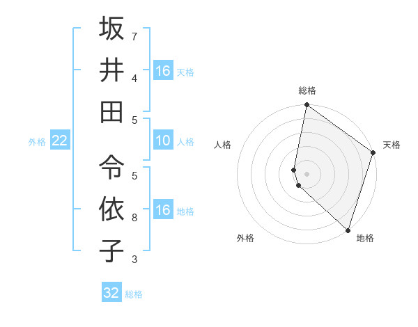坂井田 令依子さんの天格は16画の5点!