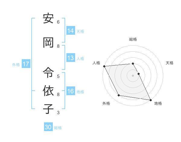 安岡 令依子さんを姓名の画数から五運を鑑定