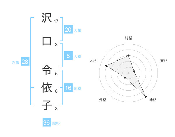 沢口 令依子さんの天格は20画の1点!