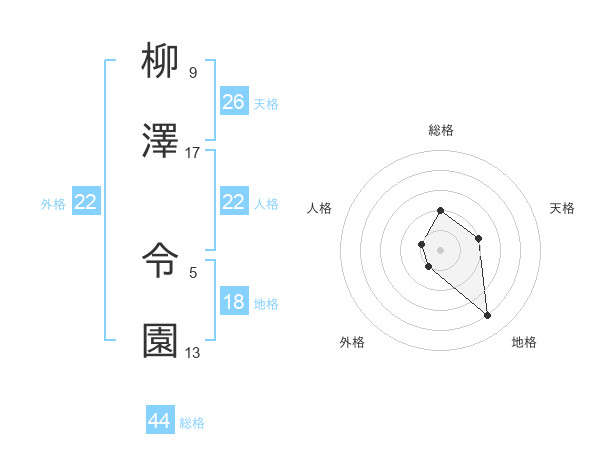 柳澤 令園さんを姓名の画数から五運を鑑定