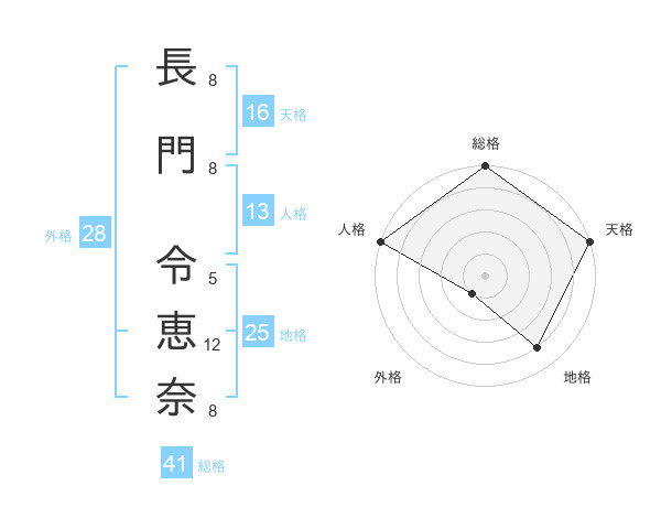 長門 令恵奈さんを姓名の画数から五運を鑑定