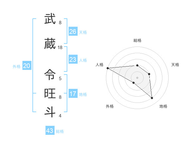 武蔵 令旺斗さんの総格は43画の2点