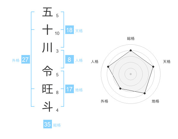 五十川 令旺斗さんを姓名の画数から五運を鑑定