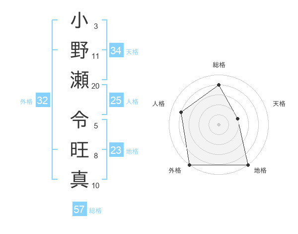 小野瀬 令旺真さんの総格は57画の4点