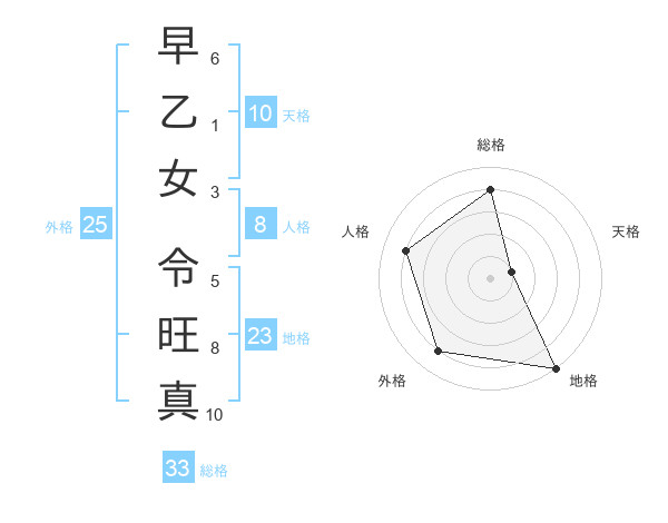 早乙女 令旺真さんを姓名の画数から五運を鑑定