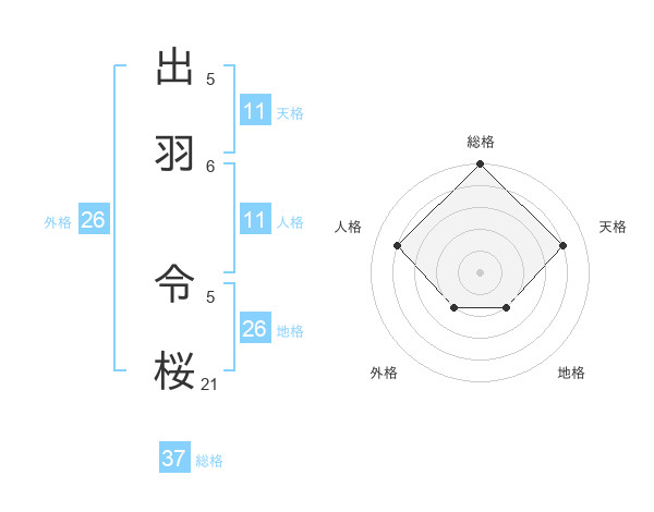 出羽 令桜さんを姓名の画数から五運を鑑定