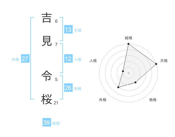 吉見 令桜さんを姓名の画数から五運を鑑定