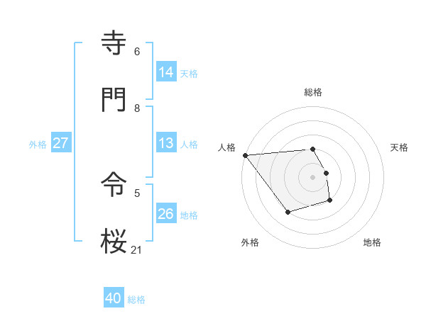 寺門 令桜さんを姓名の画数から五運を鑑定