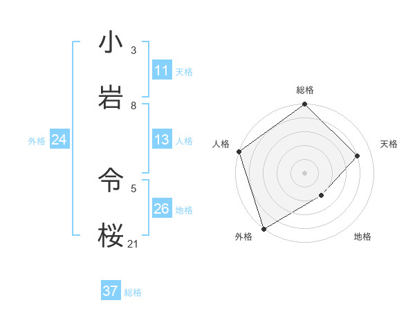 小岩 令桜さんの総格は37画の5点!