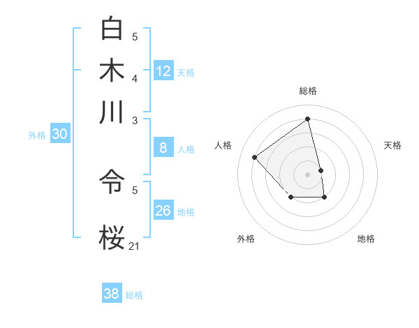 白木川 令桜さんの総格は38画の4点!