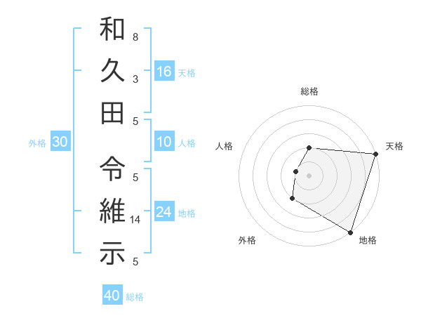 和久田 令維示さんを姓名の画数から五運を鑑定