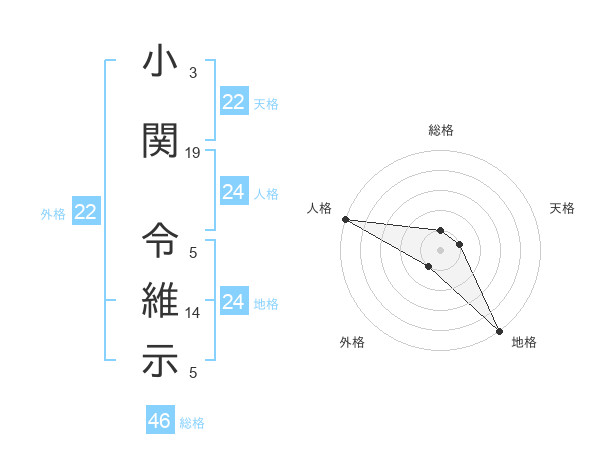 小関 令維示さんの地格は24画の5点