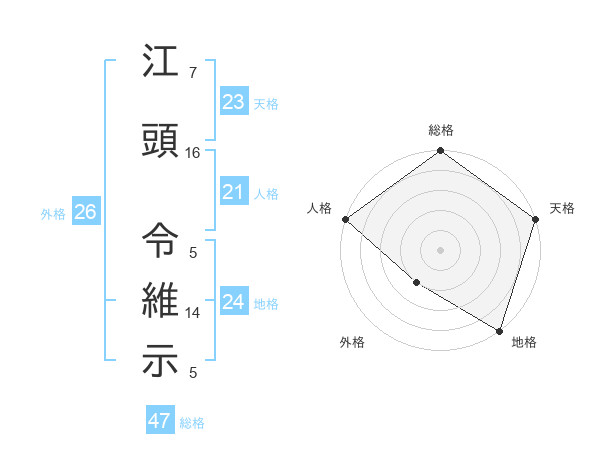江頭 令維示さんを姓名の画数から五運を鑑定