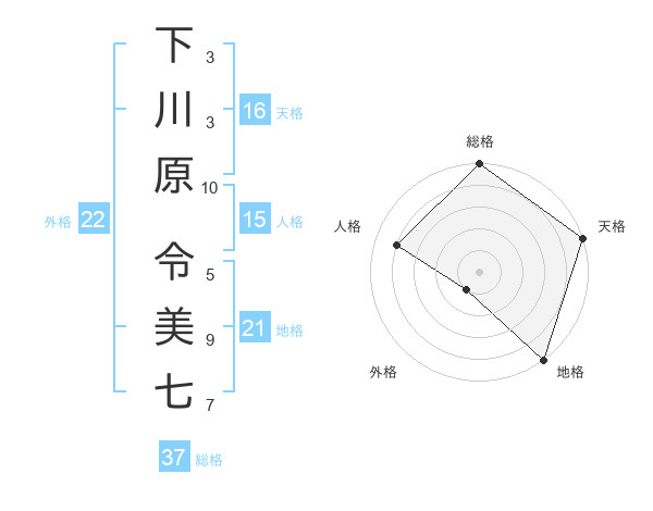 下川原 令美七さんを姓名の画数から五運を鑑定