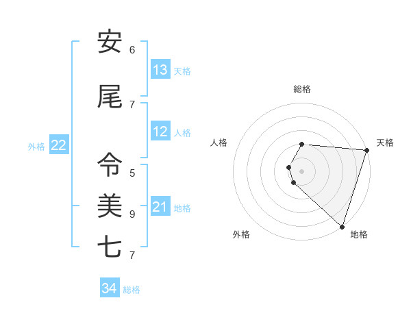安尾 令美七さんの天格は13画の5点!